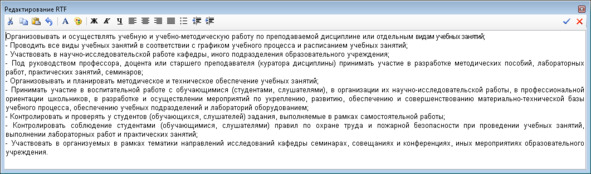 При необходимости изменения отдельных пунктов должностных инструкций корректируются необходимые параметры объектов в окнах редактирования, при этом автоматически изменяется содержимое должностных инструкций.