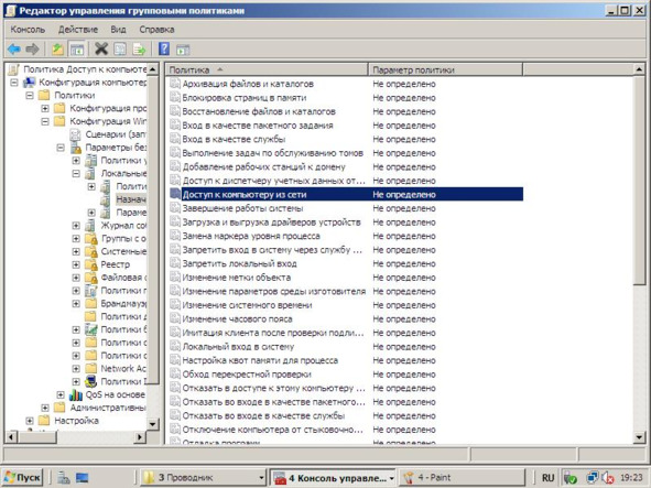 Перейдем по пути Конфигурация компьютера-Конфигурация Windows-Параметры безопасности-Локальные политики-Назначение прав пользователя-Доступ к компьютеру из сети (рисунок 6.2).