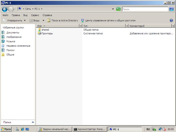 Добавим новый компьютер в домен (PC-2) и создадим пользователя без привелегий администратора, попробуем зайти в данную общую папку (рисунок 6.7).