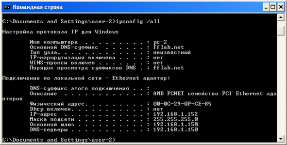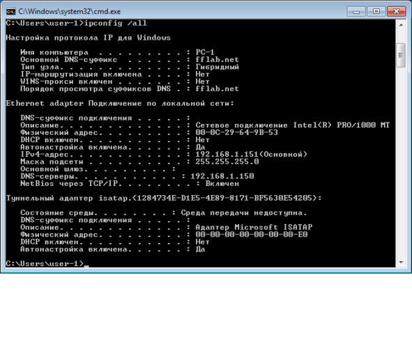 На рисунках 6.8, 6.9 приведены сведения о компьютерах домена PC-1 и PC-2, соответственно.