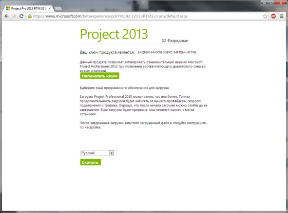 После авторизации, предоставляется возможность загрузить установочный файл MS Project Professional. Загрузка Project Professional 2013 может занять час или более. Точная продолжительность загрузки будет зависеть от вашего провайдера, используемого тарифного плана, типа подключения и других параметров. (Рис.3)