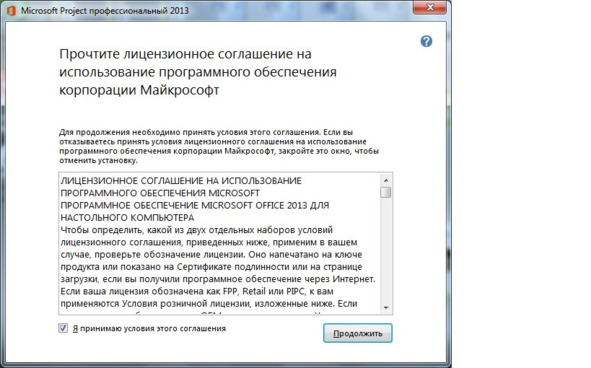 Процесс установки MS Project Professional сопровождается вопросами мастера, где необходимо прочитать и выразить согласие с лицензионным соглашением корпорации Microsoft на использовании программного продукта, выбрать компоненты, которые будут установлены на ЭВМ пользователя, дождаться окончания работы установочного пакета и при необходимости ознакомиться с дополнительными материалами в сети интернет по использованию программного продукта (Рис.4,5,6,7.).