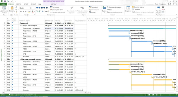 Диаграмма Ганта. Переключение на представление диаграммы Ганта.