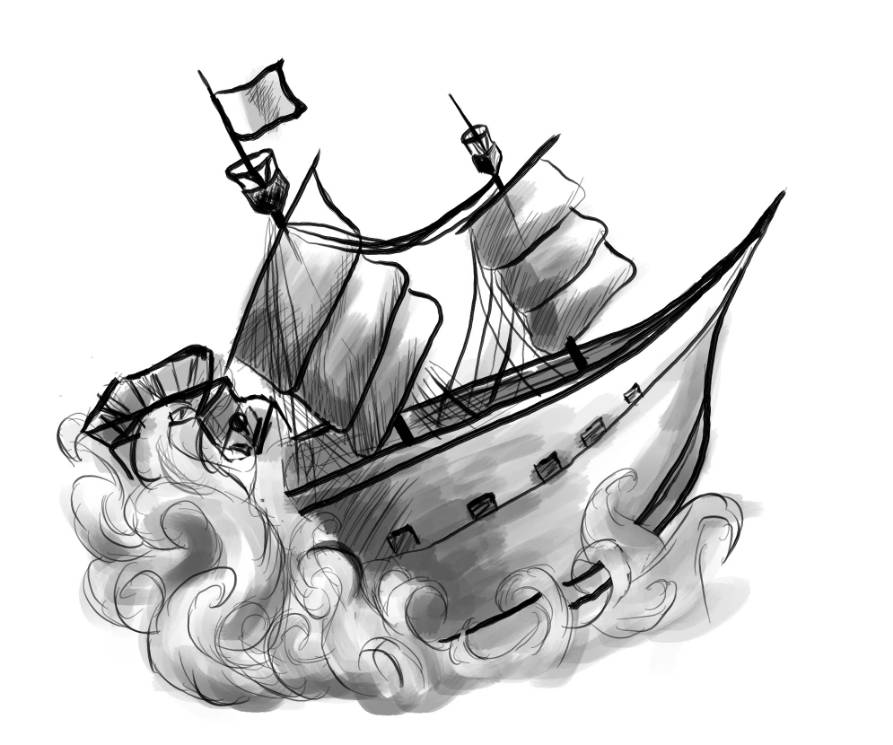 И вот, наконец-то, шторм овладел нами. Васко оповестил о нем, и я попытался маневрировать, чтобы уйти от опасности, но бушующее море не давало нам спастись. Вскоре корабль почти полностью оказался погруженным в воду.