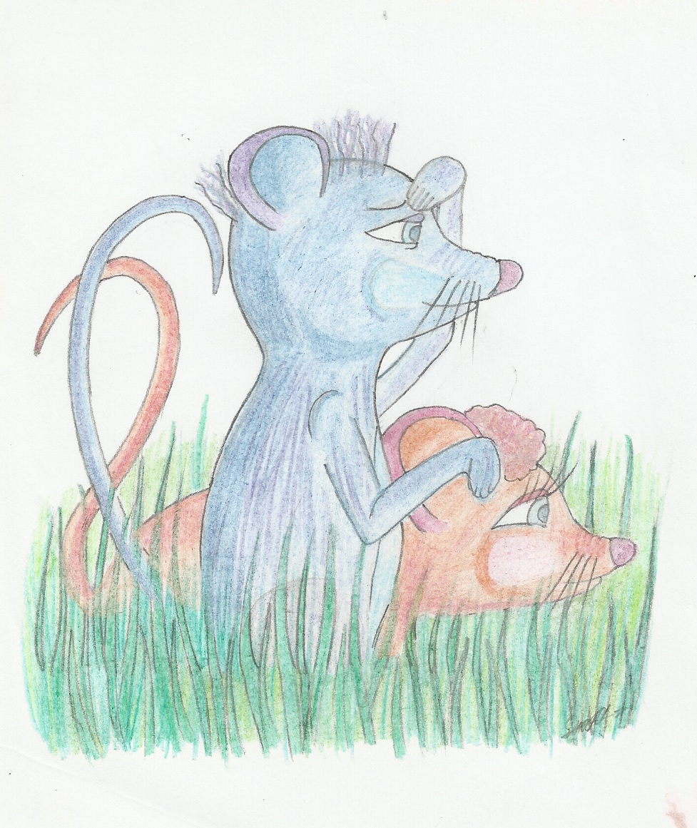 Мышки начали бегать по комнате. Хока побежала под кровать, а Бабай в угол комнаты, где лежали игрушки. Рассмотрев все тщательнейшим образов, они побежали в коридор, который выходил к большой лестнице. Эта лестница разделяла дом на две части. Мышки остановились у большой лестницы и постепенно начали увеличиваться в размерах, пока не превратились в настоящих себя. К счастью, на дворе стояла глубокая ночь, и их никто не мог заметить. Бабай с Хокой на цыпочках направились в сторону левого крыла дома. У них на пути возникла большая комната. Зайдя в нее, Бабай и Хока застыли в изумлении. На стенах висели красивые картины, а по всей комнате стояли статуи и большие вазы, расписанные удивительной красоты узорами. Они остановились, чтобы осмотреться вокруг.