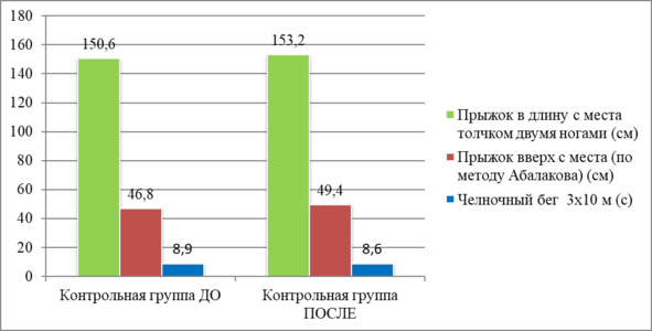 Рисунок 4.5 – Сравнение показателей контрольной группы по всем тестам