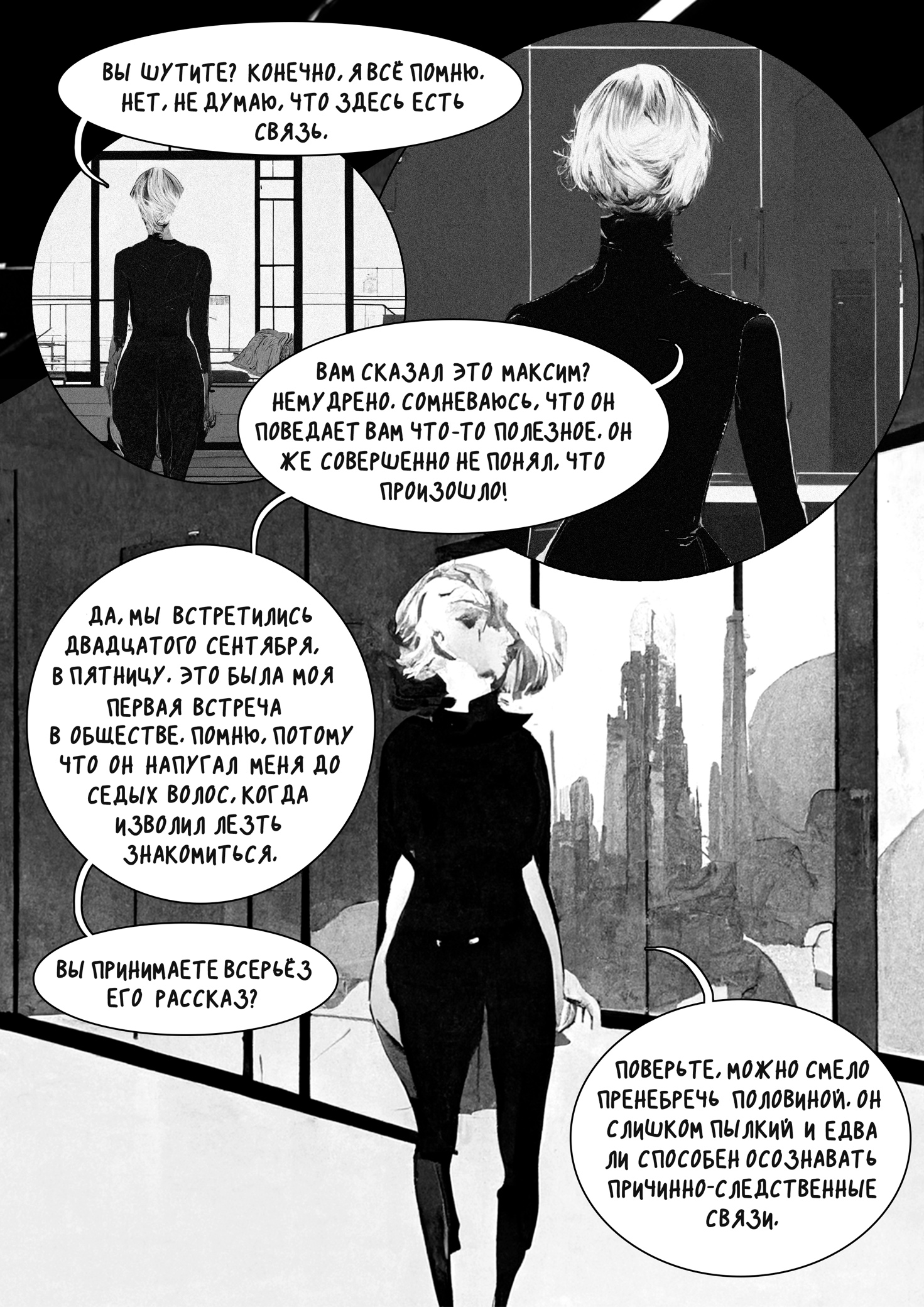 Максим ведь поведал вам, что на тот момент у нас уже была близость? Признаться, не могу осмыслить, как это произошло. Он напросился в гости, опьянел бокалом виски и начал меня донимать. Следовало его выпроводить. Мне почему-то стало его жаль. Он такой ничтожный, пустой. Мне захотелось найти в нём что-то. Я не ошиблась, Максим знатный выдумщик. Только фантазия его такая же бесцветная, как и голос. Печально.