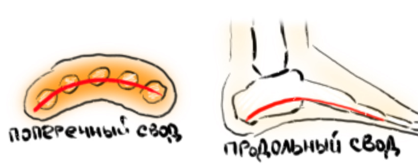 Поперечный свод: дуга которую образуют 5 плюсневых костей.