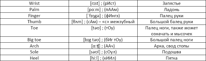 Обратите внимание, что пальцы ног и руг в английском языке будут по-разному: «fingers» и «toes».