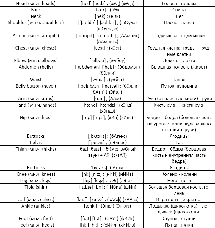 Рекомендуется изначально выучить части тела как в единственном, так и во множественном числе и вспоминать правила при необходимости преобразования других существительных во множественное число.