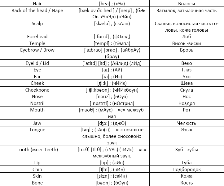 HEAD AND FACE (ГОЛОВА И ЛИЦО) + HANDS AND FEETS (КИСТИ И СТУПНИ) [hed] [ænd] [feɪs] + [hændz] [fI: t] (хЭд Энд фЭйс) + (хЭндз Энд фИИтc)