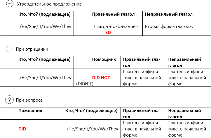 Теперь перейдём к формуле образования данного времени – PAST SIMPLE