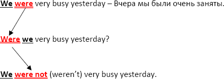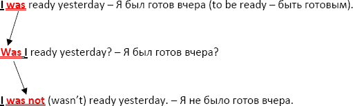 Глагол TO BE в прошедшем времени, как мы уже знаем, имеет форму WAS для единственного числа и WERE для множественного числа. В остальном, он «ведёт» себя также, как и в настоящем времени – т. е. выходит на первое место при вопросе или же при отрицании появляется частичка NOT.