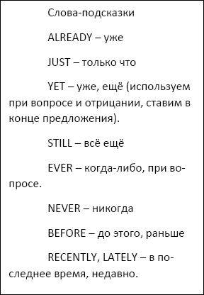 Всё очень просто! Ведь, если посудить, наше прошлое влияет на наше настоящее – вот и так, в смысловых границах временного пространства, если действие, например, произошло в какой-то момент прошлого и его результат сейчас перед нами – это и есть то, что в английском языке называется Perfect. По большей части, нам даже не важно, когда именно в прошлом произошло это что-то, у нас отсылок нет, главное – это сейчас и результат, отсюда, кстати, и название – Present (настоящее) Perfect (совершенное). Мы видим в самом названии связь с настоящим, и отсылку к тому, что это уже совершилось.