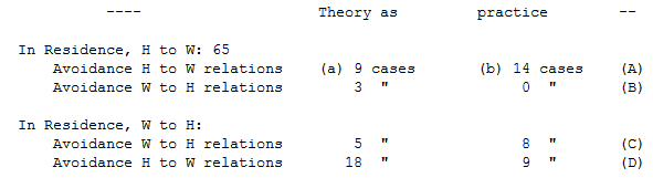 (A) As we have seen, any Avoidance under these circumstances would be remarkable without a prior stage in quite other conditions than those found generally with H to W residence. We note that whereas we might expect under even the above conditions to find only 9, there are 14. Here sexual jealousy has been an important cause.