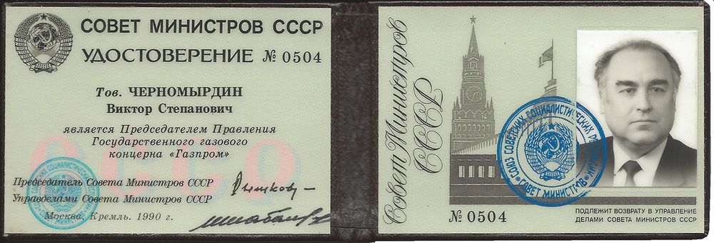 Новенькое удостоверение председателя правления Государственного концерна «Газпром» В. С. Черномырдина. 1990