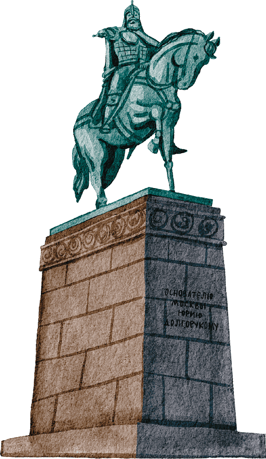 ПАМЯТНИК ЮРИЮ ДОЛГОРУКОМУ находится в сердце столицы – на Тверской площади напротив мэрии. Его возвели в 1954 году по проекту скульптора Сергея Орлова. Бронзовая фигура великого русского князя с распростертой рукой и на коне словно указывает на то место, где в будущем расцвела столица России. На барельефе постамента табличка со словами: «Основателю Москвы Юрию Долгорукому». Годом рождения столицы считается 1147 год.