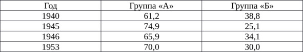 2) Проанализируйте соотношение производственных групп «А» и «Б» в общем объёме промышленности СССР в 1940 – 1953 гг. Дайте обоснование этому соотношению в контексте внутренней и внешней политики СССР.