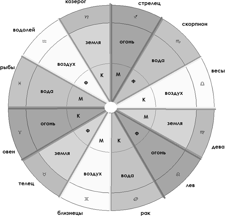 Историю со стихиями вы сможете проследить в любой культуре. С крестами же все не так очевидно. Представьте себе многогранник. Мы можем крутить его как захотим, исследуя все грани. Многогранник как фигура есть потому, что мы сами многогранны. Есть дуальность, есть тройственность, есть структура четырех, есть число «семь», а есть еще божественная единица. В общем, мы можем смотреть на наш мир через любую грань, и каждая грань будет раскрывать нам мир под определенным углом, чтобы мы составили полноценную картину. Вот и на астрологию мы смотрим как на многогранник, разглядывая каждую грань. Элементы – одна грань, кресты – другая.