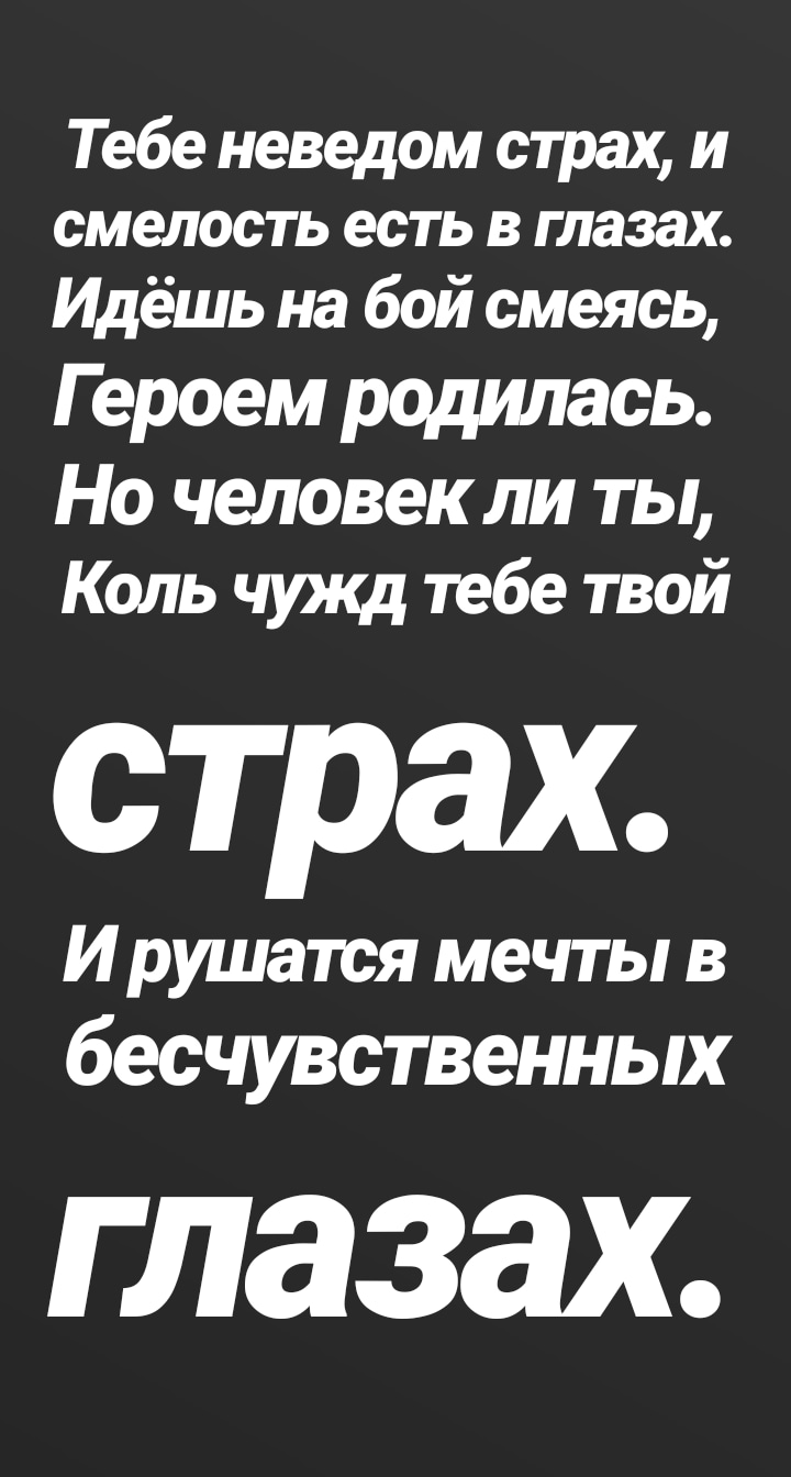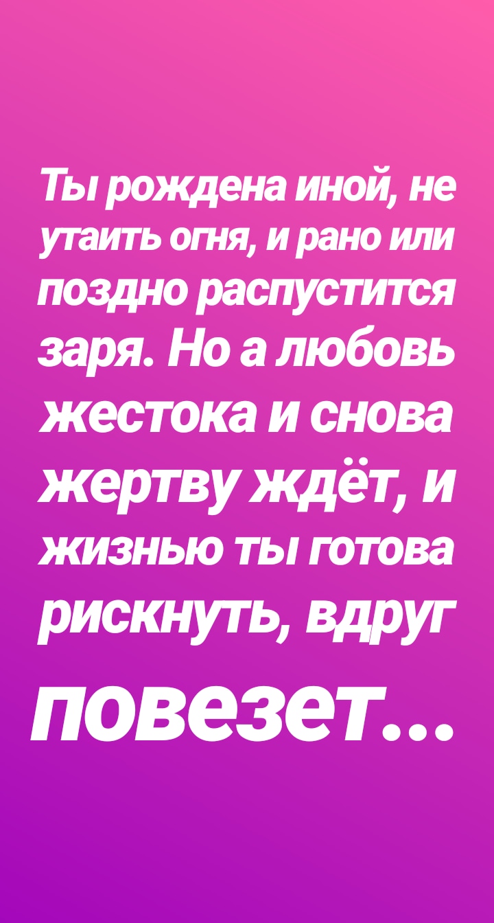 Я жила чужой жизнью и мне было запрещено любить , я нашла себя и я снова не имею права на счастье. Это какой-то рок судьбы. Но между жизнью и любовью я неизменно буду выбирать любовь , потому что я все ещё верю в человеческое сердце и то , что любовь может быть сильней судьбы и всяких пророчеств.