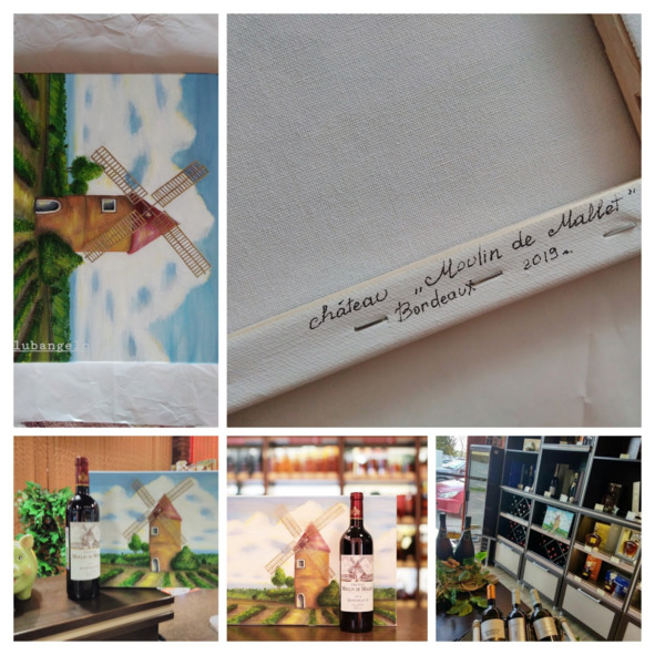Рисовала для винного магазина. Сюжет взят с этикетки любимого вина моей мамы – Chateau «Moulin de Mallet» Bordeaux, France. Я покупала это вино в том магазине, в котором теперь висит эта картина.