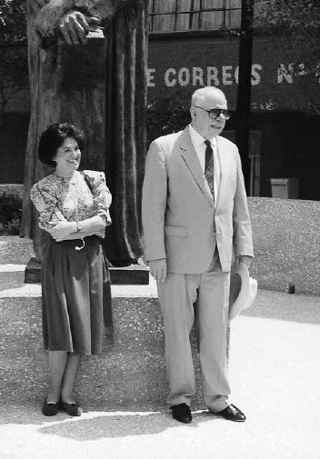 X А. Ливрага и Д. С. Гусман у памятника Джордано Бруно