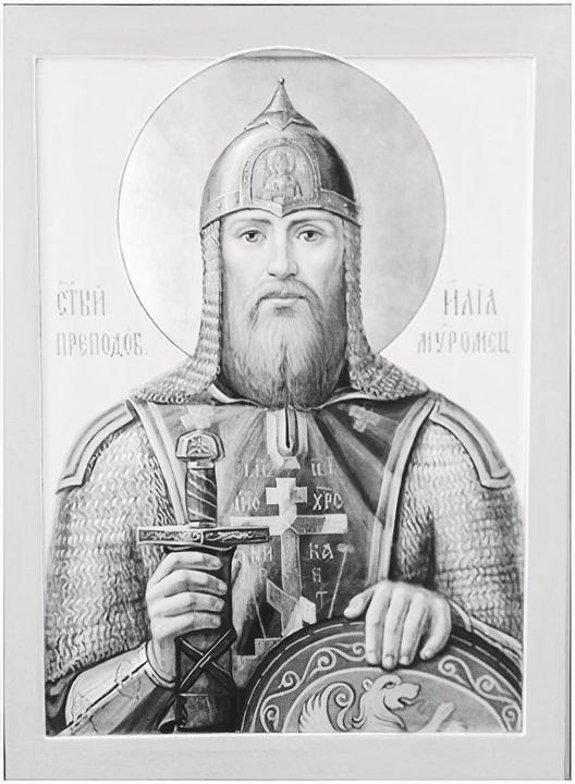 Икона святого преподобного Ильи Муромца в воинском облачении из Заиконоспасского монастыря