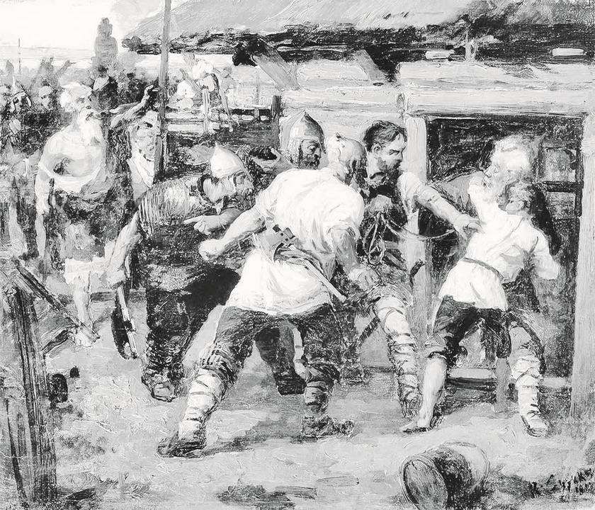 Язычники убивают варягов-христиан. Художник В. И. Суриков. 1884 г.