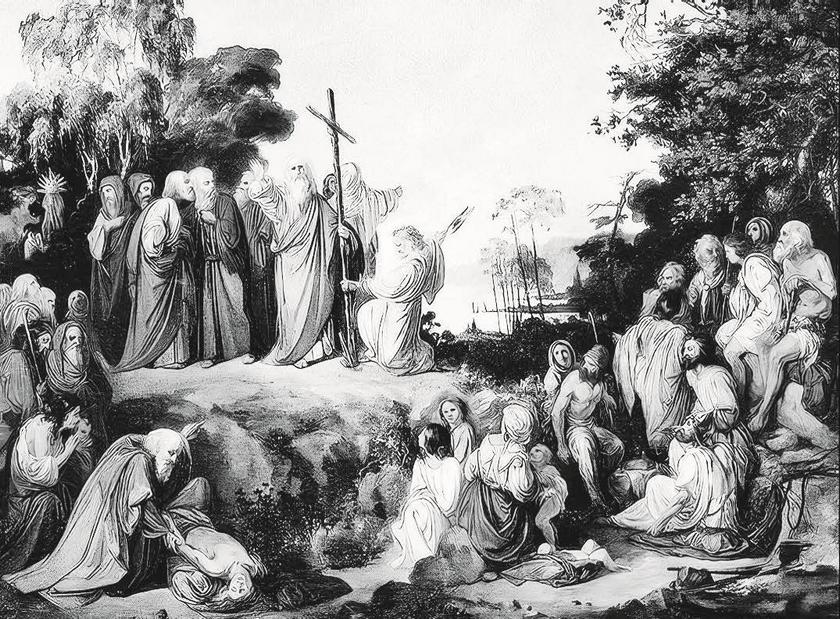 Апостол Андрей Первозванный водружает крест на горах Киевских. Художник Н. П. Ломтев. 1848 г.