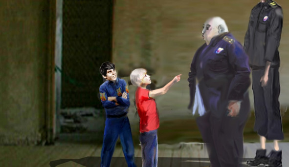 Остановившись, я увидел и услышал, как мальчишка, появившийся в камере вместе с Костровым младшим, стоя напротив брюхана, нарочито-ласковым, но не предвещающим ничего хорошего голосом говорил полицаям: