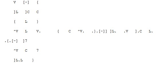 4. []; V; [];.}; V; [-]; {; {; L; }; ^V; L; V; []; ]L; ^V; [-]; []; V; ].C; ^[-]; }; ]C; ],C; V; {; C; ^V; ^[-];.}; [-]; {;