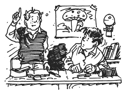But she wasn’t listening. She was busy craning round the room, searching for a spare desk. And I couldn’t be bothered to say it again. I reckoned she was probably bright enough to pick it up in time. So I just carried my stuff over to the empty desk she was pointing towards, in the back row.