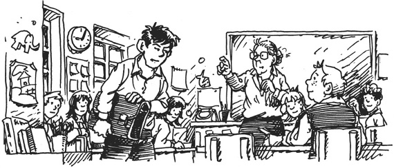 My turn to stare. Was my new neighbour touched with the feather of madness, or what? Here was this epic windbag, droning on and on about whose turn it was to be the blackboard monitor, or some other such great thrill, and Gardener Joe was sticking up for her. I knew right away that this was the sort of school where everyone lines up quietly to do something really exciting, like opening the door for a teacher. And if you gave them something wild to play with, like a wobbly chair, they’d probably be happy all through break.