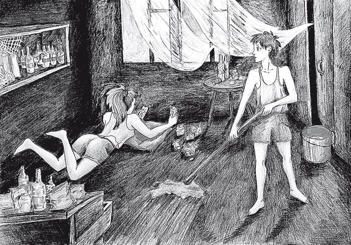 – Как грубо. Это мои вещи, – раздался голос слева от него. Синдзи повернулся в ту сторону и столкнулся с Аской, одетой небрежно и держащей в руке банку с газировкой.