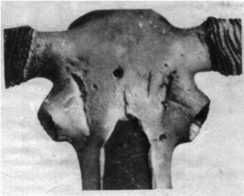 Целая коллекция подобных черепов была описана учёным Хутоном и хранится в Кейптаунском музее. Череп бизона 40-тысяелетней давности, найденный в Якутии, также имеет типичное пулевое отверстие.