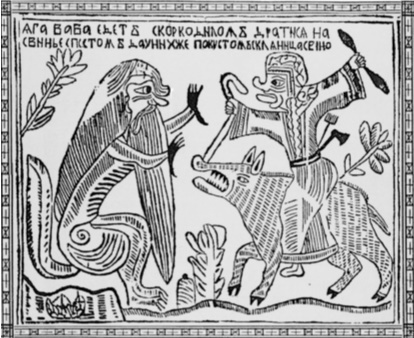 Крокодилы России. В этом контексте интересна часто повторяющаяся тема лубочных картинок, распространенных в старину на Руси: победа бабы-яги над неведомо откуда взявшимся чудовищем. Баба-яга (ведьма, ведунья, мастерица магии) здесь отражает вполне реальное представление о том, что простой человек не способен взять верх над всякой «чертовщиной». Очевидно, сделать это под силу только волшебникам, колдунам, людям, знакомым с механизмами магического воздействия.