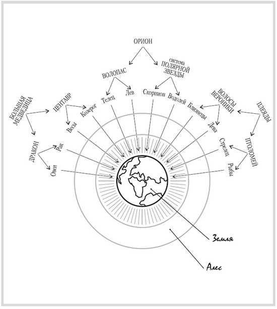 Животворящий луч Мастера – это особый вид энергии, конденсирующей материал определенным образом и направленной на строительство нового Целого, живого и полного. Вхождение Мастера – это начало процесса Познания, начало отделения плотного от тонкого, начало дискретизации энергии и материала внутри Космического Существа. Те силы, которыми работает Мастер, можно охарактеризовать как сочетание двенадцати различных видов тонких энергий. Расшифровку их по отношению к Алес дают зодиакальные созвездия. В каждом из них есть планета или звезда, испускающая во всей полноте ток определенного Качества и свойства (хотя само по себе объединение звезд в созвездия исторически обусловлено случайным человеческим восприятием). Сами планеты и звезды тоже не испускают собственных токов, они являются передаточными инстанциями, адаптерами энергий Мастеров, давая их расшифровку в более плотной и конкретной форме. Телом Мастера при его внедрении в Космическое Существо становится весь слой материала, собранный под действием лучей Мастера.
