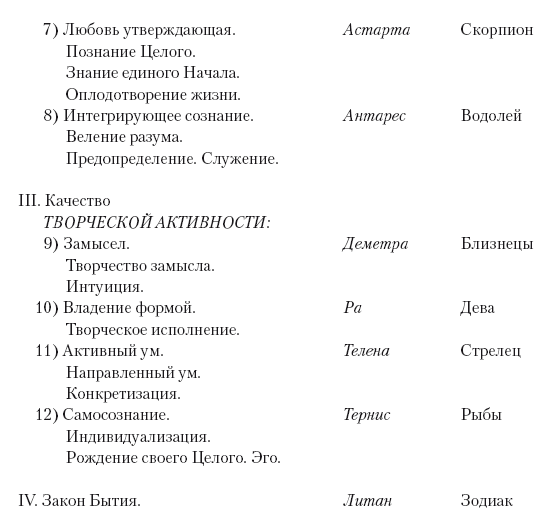 II. Качество ЛЮБВИ-МУДРОСТИ несут созвездия: