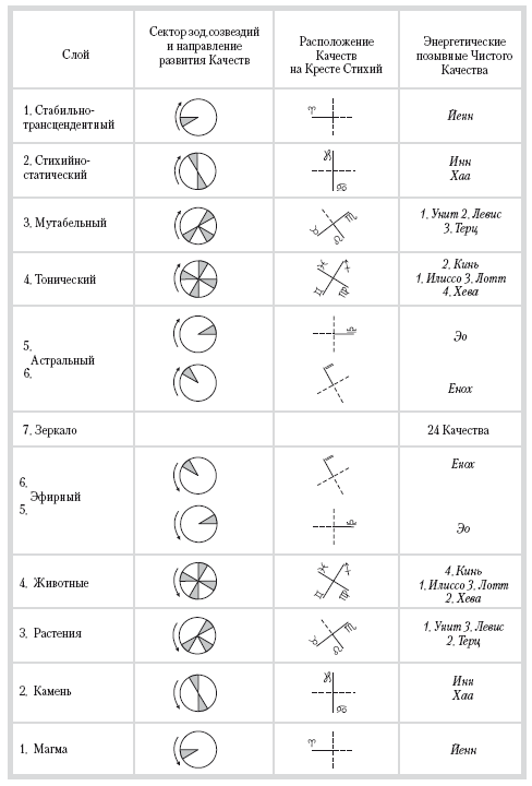 Таблица 2. Развитие слоев Алес по двенадцати Качествам