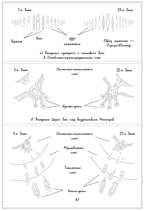 Итак, в результате работы Первого Мастера выделился первый слой Алес – ее часть, обладающая определенным Качеством и своей задачей. Создание этого слоя дало возможность ограничить Монаду оболочкой, определить точно пространственно-временное положение, создать полюса и «натянуть меридианы». Тем самым у Алес появилась возможность определения собственного стабильного «Я», она смогла самоорганизоваться, обрести самобытность. Появление Стабильно-трансцендентного слоя, его наличие, фиксирует становление Земли как Целого Космического Существа, способного к дальнейшему самопознанию.