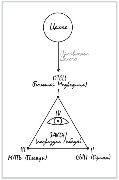 Следует заметить, что из трех качественно-временны́х Аспектов Целого только Принцип Сына при расшифровке не имеет своих Хранителей Чистого Качества73 и исходит как бы напрямую из 3-качественного источника (Большая Медведица, Орион, Плеяды). В отношении же всех трех аспектов Закона можно сказать, что они имеют один первоначальный проводник Чистого Качества – это созвездие Лебедя, СООК. Это объясняется тем, что все три аспекта – рабочие и при дальнейшей расшифровке в густом материале опираются на источник, СООК. Такая прямая ориентация на Чистое Качество Закона необходима, так как в процессе деятельности рабочих Атомов могут быть искажения, обусловленные внутренними условиями системы, в которую они попадают.