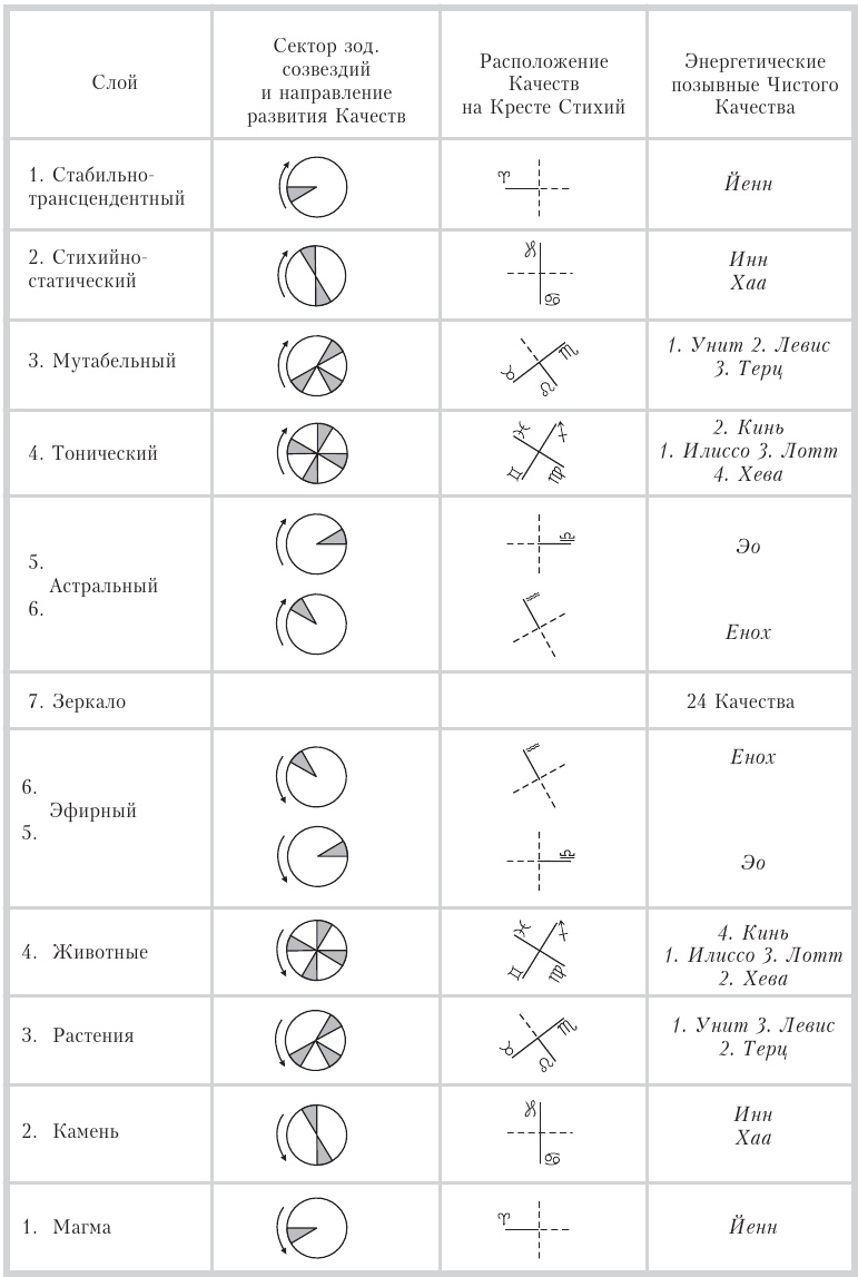 Дело в том, что будущие Цари Зон этого Качества еще не рождены, а Мастера еще не вступили в работу. Эти Качества будут осваиваться Землей-Алес последними, заключая ее цепь исполнения Плана. Пока же ниша этих Мастеров занята перемешанным фантомным материалом эманаций предыдущих Качеств, а соответствующий материал не освоен и находится в слабо структурированном состоянии в Астральном слое. Более подробно вы можете узнать об этом из предыдущих книг серии «Книга Жизни», а мы в дальнейшем будем касаться этих сведений постольку, поскольку они относятся к нашей теме, в разговоре о направлении дальнейшего развития человека и Земли в целом.