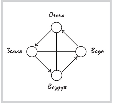 Проецируясь в глубины низкоэнергетических слоев Алес (условно называемых Магма и Камень), эта структура расположения аспектов Закона создала подобный себе крест-турбулент. В нашей терминологии это Крест 12-х Зон (см. «Стучащему, да откроется!» и «Сезам, откройся!»). Кратко резюмируя этот момент, можно сказать, что в глубинах Алес действует отраженный принцип Закона в применении к сверхплотному материалу. В силу проявления закона отражения, стихии в нижнем кресте (в дальнейшем мы его будем называть «Черным», в отличие от «Белого» – верхнего) расположены зеркально (рис. 6).