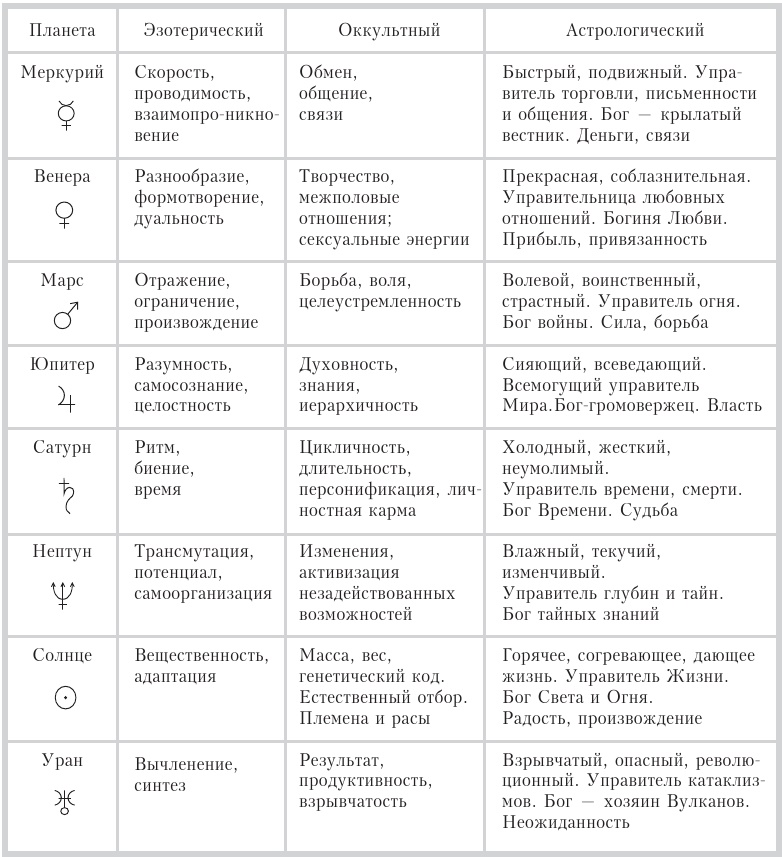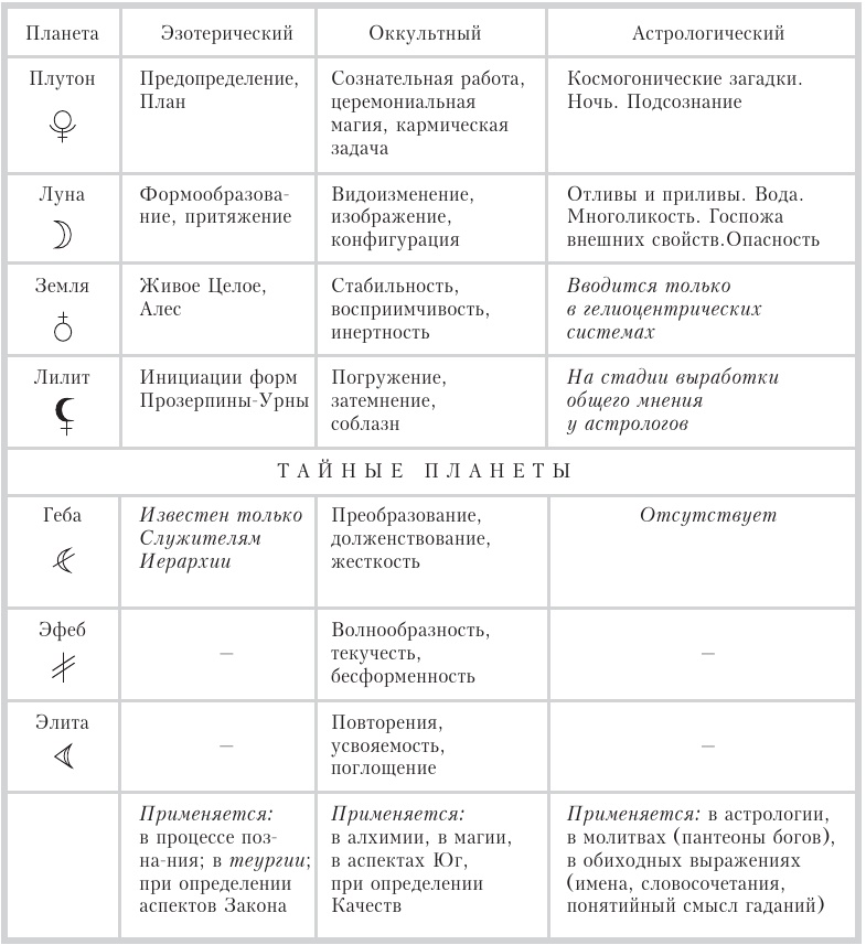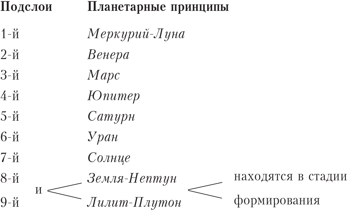 Ниже приведен последовательный ряд подслоев Мутабельного слоя в их сегодняшнем состоянии. Принципы планет, имеющие свойственную фантомным понятиям переменчивость, читателям придется в дальнейшем «отслушивать» самим, опираясь на сведения, приведенные в предыдущей таблице.