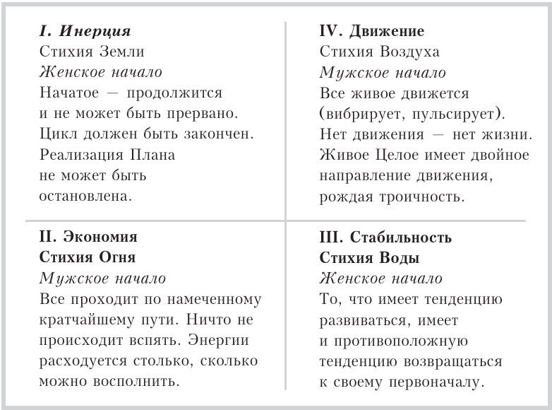 Для большей наглядности краткое описание Постулатов Закона можно свести в нижеследующую таблицу (таблица 8).
