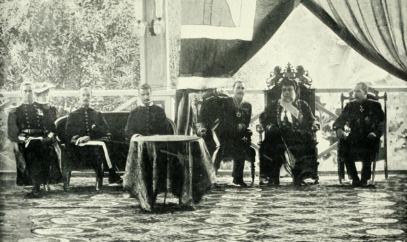 Очень внушительной церемонией стало награждение его высочества Сейида Хамуда, султана Занзибара, знаками Ордена Великого Командора Звезды Индии. Церемония проходила в зале Виктории, первоклассном здании для общественных церемоний такого рода. Зал находится в султанском саду, где всего за несколько дней до установления британского протектората процветал рабовладельческий рынок. Сэр Артур Хардинг, генеральный консул и дипломатический агент Британского Величества, сидел по правую руку султана; бригадный генерал А. Е. Райки, командующий султанской армией, находился слева от султана. Другими высокопоставленными представителями на церемонии были Базиль Кейв, эсквайр и консул; Генри Дандас, эсквайр, вице-консул; рядом с последним сидел П. Ф. Тиллард, капитан 16-пушечного парового фрегата «Magicienne». За капитаном сидела миссис Базиль Кейв.