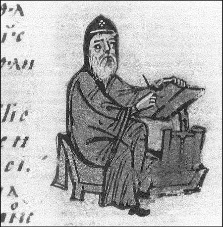 Изображение монаха-каллиграфа в манускрипте IX в.