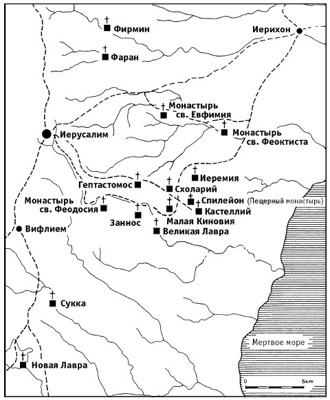 Иллюстрации заимствованы из книг: Patrich Joseph. Sabas, Leader of Palestinian Monasticism. A Comparative Study in Eastern Monasticism, Fourth to Seventh Centuries. Dumbarton Oaks Studies, 1995; The Sabbaite heritage in The Orthodox Church from the fifth century to the present. Orientalia Lovaniensia analecta, 98. Leuven, 2001 и из рукописи XIX века в библиотеке СТСЛ.