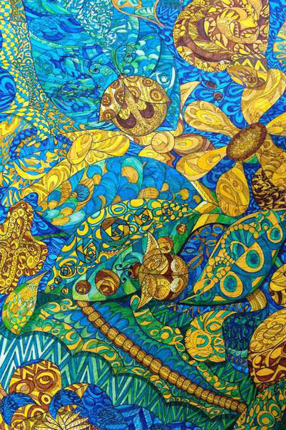 Огромная лазоревая долина раскинулась перед глазами юного путешественника. Весь овраг зарос красивой зелёно-голубой травой. А посреди всей этой красоты – на самом дне – сиял золотой цветок, поднимающийся высоко над травой.