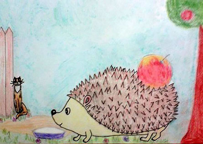 Моросил осенний дождик,Скрыли небо тучи.Под крыльцо забрался ежик,Ух, какой колючий!Не случайно оказалисьРядом Настя с мамой,Накормить его пыталисьХлебом со сметаной.Ежик фыркнул и несмело,Подвергаясь риску,Ткнулся носом неумелоВ глиняную миску.Замарал сметаной носик –Очень вкусный ужин!И еще добавки просит,Прижимая уши!Каждый день теперь исправноХодит их проведать,Помня всё ж о самом главном –Что спешит обедать.